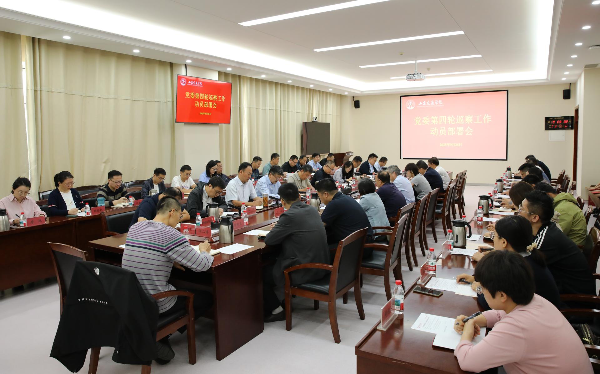 9月26日上午,学校在长清校区明德楼301会议室召开党委第四轮巡察工作动员部署会。党委书记、党委巡察工作领导小组组长王伟,党委副书记、党委巡察工作领导小组副组长李贞涛,党委委员、纪委书记、监察专员、党委巡察工作领导小组副组长刘世杰,党委委员、党委组织部部长、党委巡察工作领导小组成员王兴盈,党委委员、党委统战部部长刘庆波出席。会议由李贞涛主持。