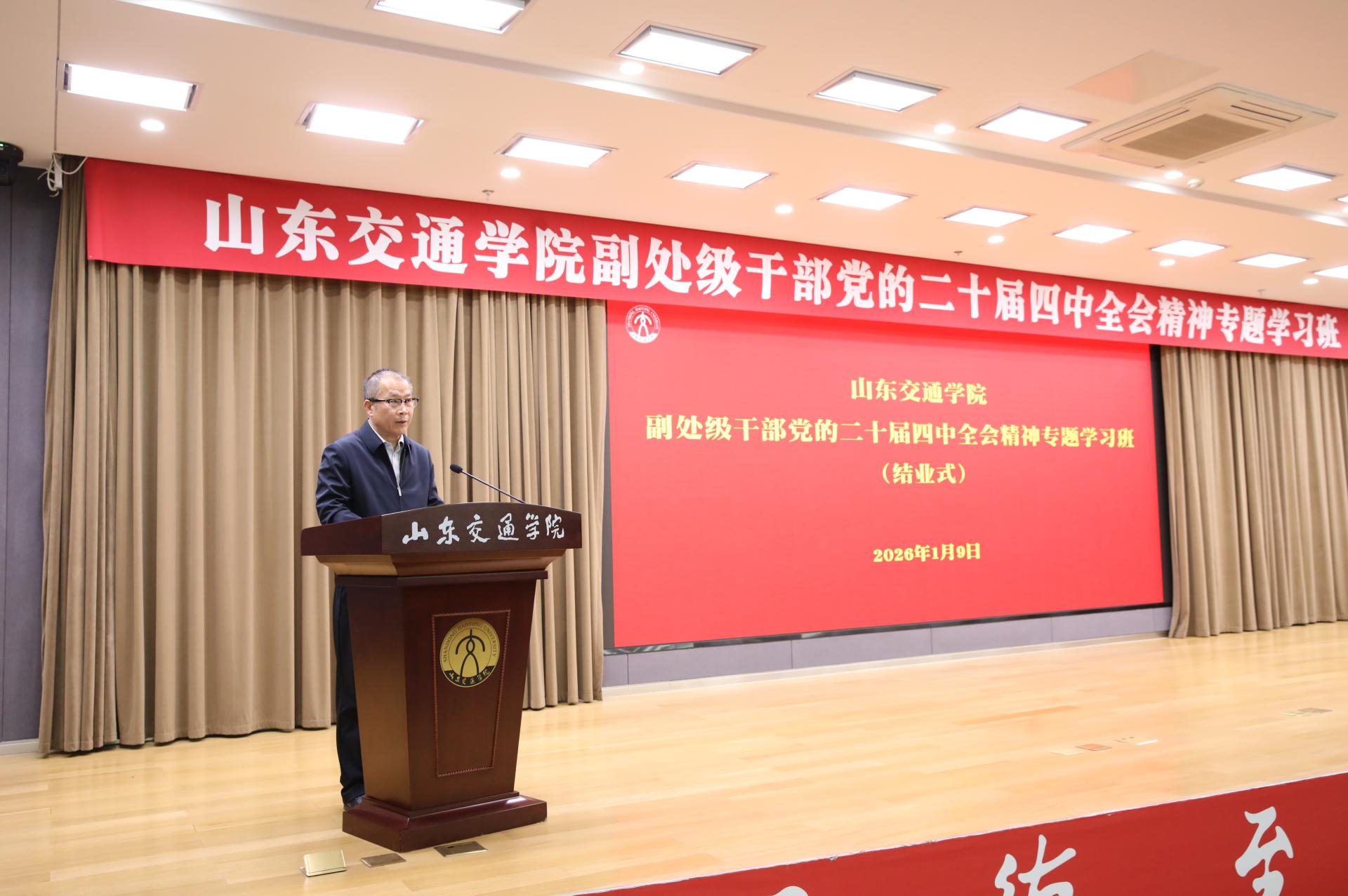 1月7日至9日,学校举办副处级干部党的二十届四中全会精神专题学习班。学校党委书记王伟出席开班式并作动员讲话,党委副书记李贞涛主持结业式并作总结讲话,党委委员、党委组织部部长王兴盈,党委委员、党委统战部部长刘庆波出席开班式。
