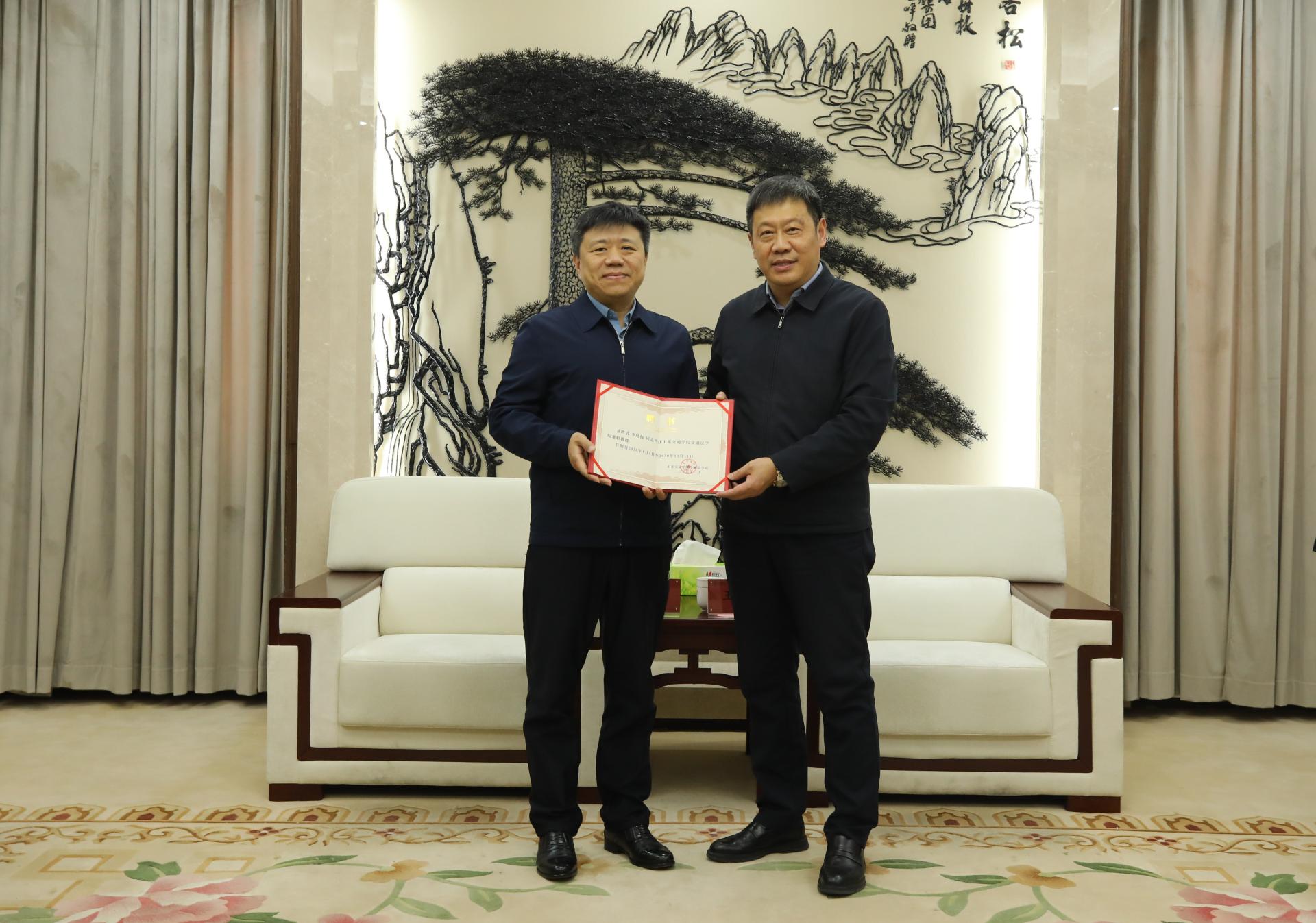1月15日,学校在工程中心报告厅举办法学专业行业导师聘任仪式暨协同育人研讨会。长清区委常委、政法委书记李培振等领导、专家参加活动。学校党委书记王伟会见了出席研讨会的嘉宾,并为行业导师代表颁发聘书。