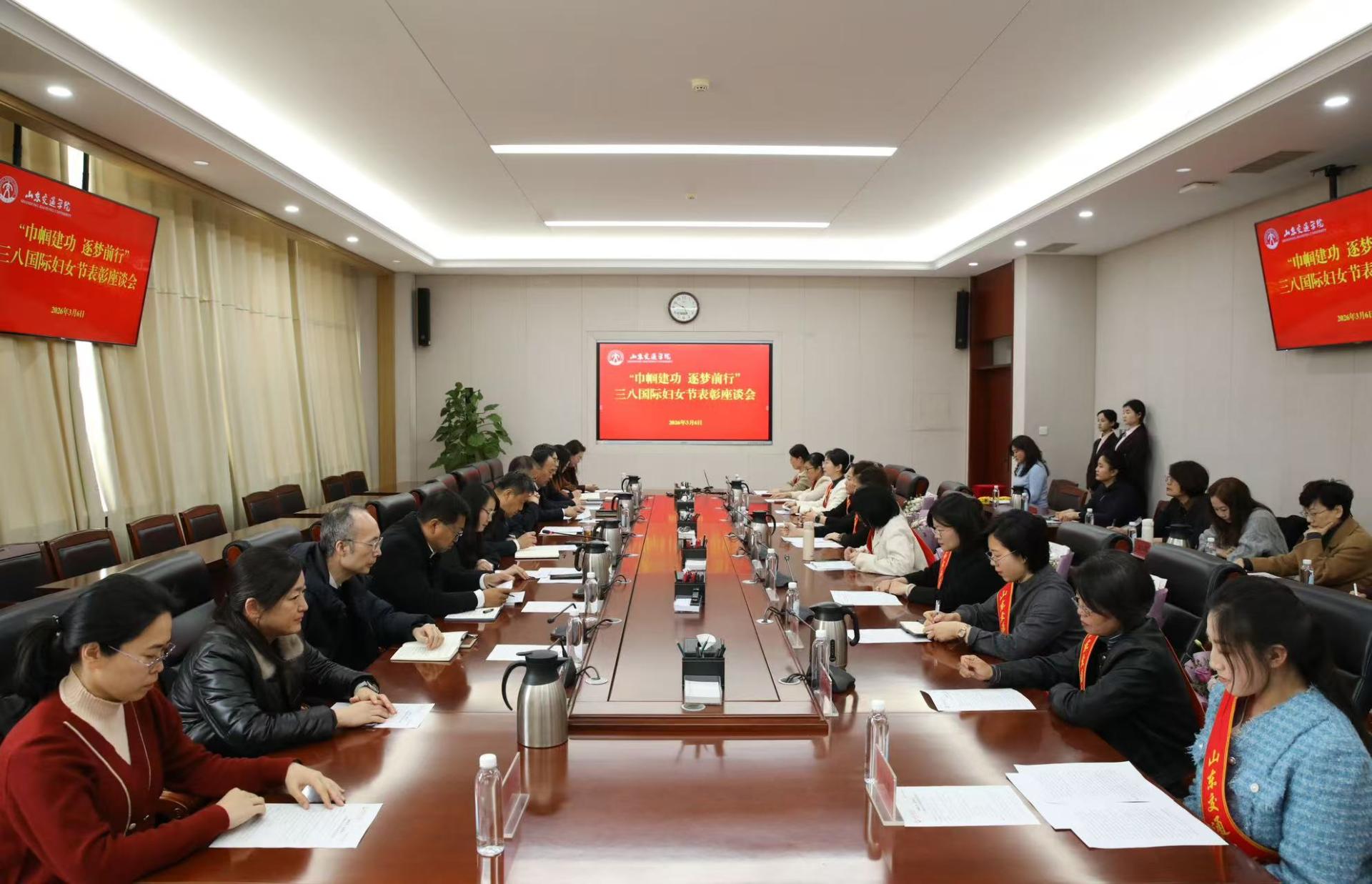3月6日下午,在第116个“三八”国际妇女节来临之际,学校在长清校区明德楼303会议室召开“巾帼建功 逐梦前行”主题“三八”国际妇女节表彰座谈会。学校党委书记王伟,党委副书记李贞涛,党委委员、党委组织部部长王兴盈,党委委员、党委统战部部长刘庆波出席。会议由王兴盈主持。